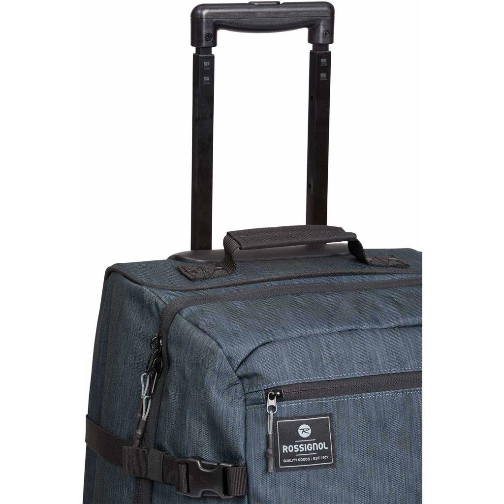 Cestovní taška s kolečky Rossignol District Cabine Bag, kde je odolná kontrukce vybavena kolečky, ideální pro cestování a jako příruční zavazadlo do letadla. Batoh má dvě hlavní přihrádky, dvě vnější, přední kapsy se snadným přístupem, teleskopickou rukojeť, vyztužené rukojeti pro přenášení a dva kompresní pásky. Dlouhodobá odolnost 600D Polyester poskytuje ochranu proti vodě. Snadný přenos, pevná, zabudovaná kolečka a zatahovací madlo usnadňují cestování.