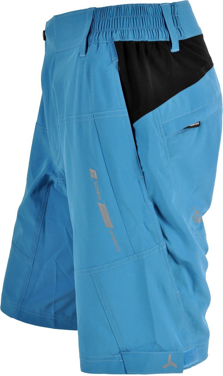 Volné pánské kraťasy z prodyšného a pružného materiálu. - Technický popis reflexní prvky, stahování dolního kraje, odvětrání, dvě boční kapsy na zip, rozepínání na zip u kalhot, volný střih, dvě kapsy na zip na zadním díle, možnost dokoupit vnitřní kalhoty s cyklovložkou Materiál QuatroFLEX - čtyřsměrně elastický, rychleschnoucí materiál.